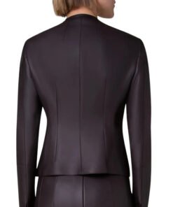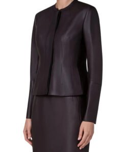 Black Matte Women’s Astra Noir Collarless Leather Jacket- Shop authentic leather jackets at Jacketzilla.com