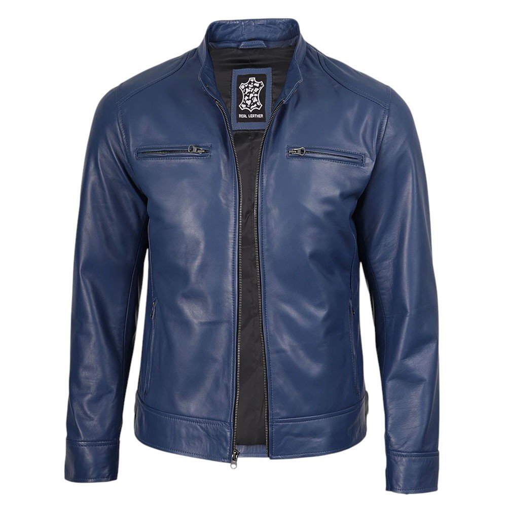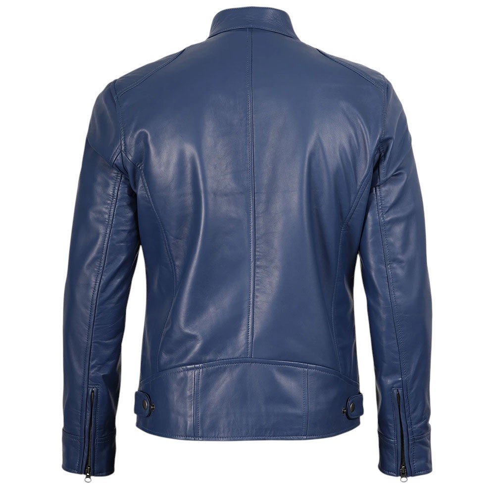 The Men’s Cobalt Blue Leather Jacket blends modern boldness with clean biker styling. Made from premium genuine leather, it features a smooth finish, structured front zipper, and chest zip pockets that add function and attitude. The slim silhouette and stand-up collar create a sharp, masculine profile, while the soft viscose lining ensures all-day comfort. Perfect for casual outings, weekend rides, or night events, this versatile jacket pairs effortlessly with jeans, neutral tees, and boots. Designed for men who appreciate distinctive color, contemporary design, and durable craftsmanship, it adds refined edge to any wardrobe.