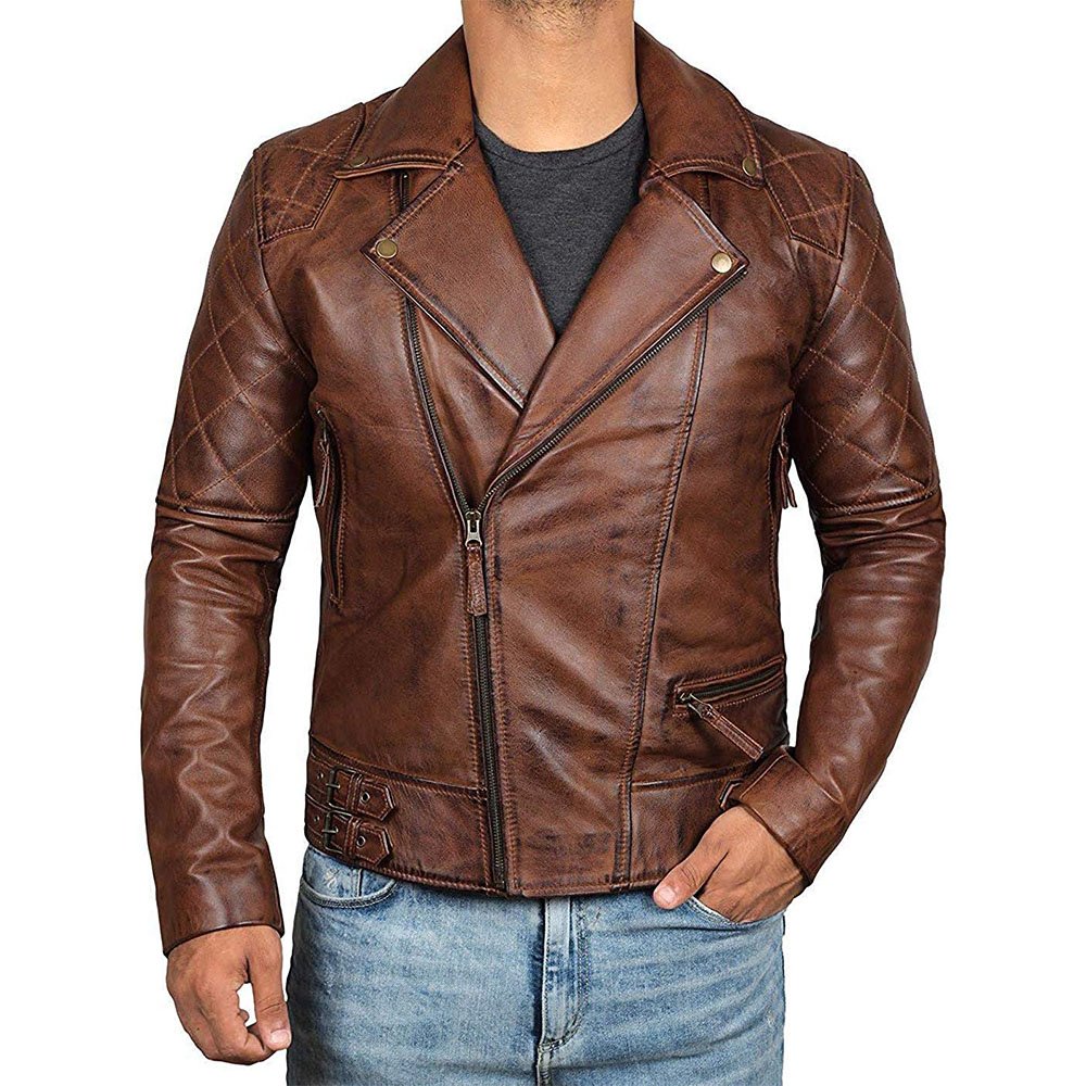 Brown Men’s Deny Biker Leather Jacket- Shop authentic leather jackets at Jacketzilla.com