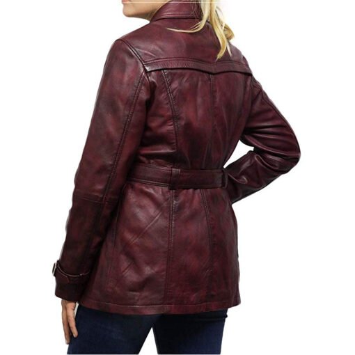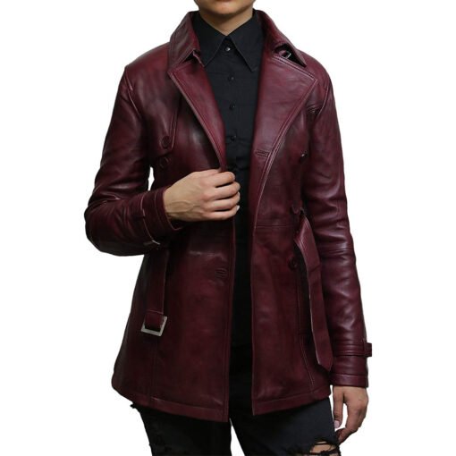 The Women’s Maroon Leather Coat is a stunning combination of sophistication and strength. Made from genuine premium leather, this long trench-style jacket features a deep maroon tone, wide lapel collar, and adjustable belt straps that accentuate your waistline. Its structured slim-fit design offers a confident and feminine silhouette, while the inner viscose lining ensures comfort and warmth throughout the day. Ideal for both formal and casual looks, this maroon long leather coat for women adds a touch of class to any outfit pair it with boots or heels for an effortlessly polished appearance.