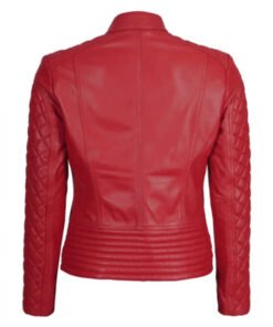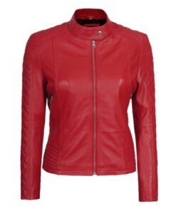 The Women’s Red Quilted-Sleeve Leather Jacket blends confident fashion with sleek moto detail. Crafted from premium genuine leather, it features a striking red finish, smooth zip-front closure, and quilted sleeves that elevate its modern street appeal. The tailored silhouette flatters the figure, while the soft inner lining ensures comfortable all-day wear. Functional side pockets add everyday convenience, making it perfect for pairing with jeans, boots, or fitted tops for a bold city look. Designed for women who love luxury craftsmanship, vibrant style, and versatile wearability, this jacket is ideal for nights out, weekend plans, and expressive street style.